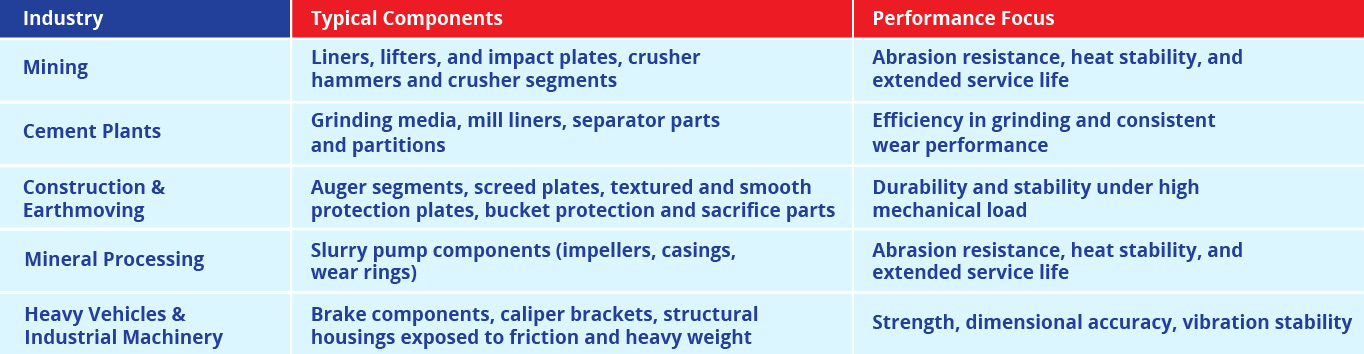 Global buyers across mining, construction, cement, and heavy equipment industries rely on AKP Ferrocast for: